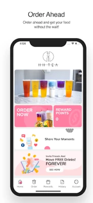 HH TEA的魅力远不止于点餐。我们更致力于构建一个充满活力的社区,邀请您成为其中一员。捕捉并分享您与HH TEA共度的美好瞬间,通过内置图库将您的美食喜悦传递给亲友。此外,您的专属HH TEA账户页面是您管理一切的中心。您可以轻松查阅当前的奖励积分余额,回顾所有历史订单详情,以及享受更多个性化服务,确保您每一次与HH TEA的互动都充满价值与惊喜。