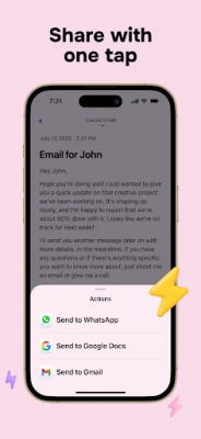 Letterly 支持超过50种语言,让全球用户都能无障碍地使用。生成后的文本可轻松一键分享至WhatsApp、Telegram、邮件等多种平台。为了满足不同用户的视觉偏好,Letterly 提供了深色和浅色两种界面模式供您选择。此外,如果您仅需原始语音转写,Letterly 也能精准完成。未来,Letterly 还将推出个性化写作风格调整功能,让文本在正式、休闲、学术等不同风格间自如切换,以及实时语音翻译功能,进一步拓展您的沟通疆界。Letterly,您的智能有声笔,让每一次表达都精准高效。